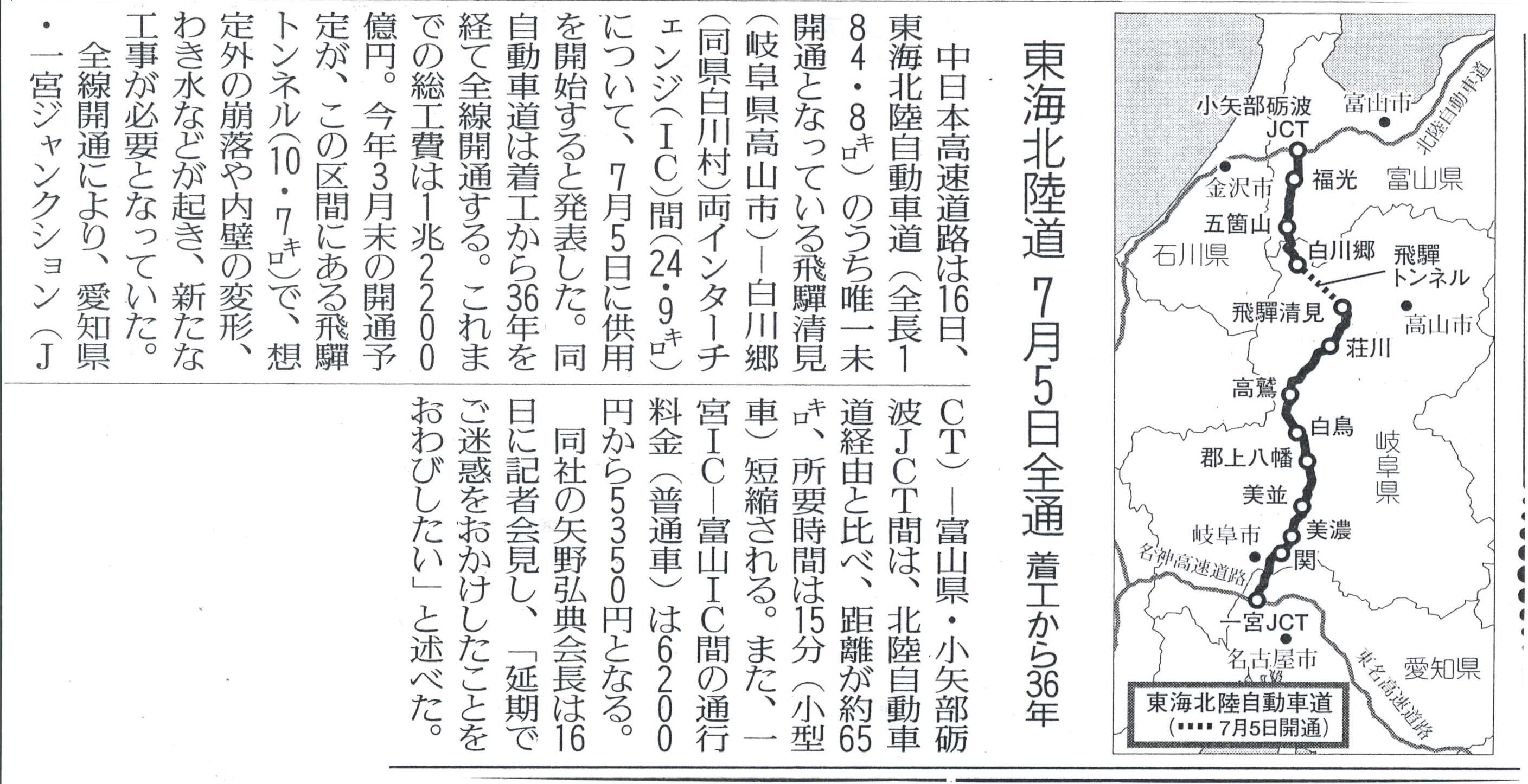 飛騨トンネルは、飛騨市河合町と大野郡白川村をまたぐ籾糠山(1、744メートル)を貫く約10・7キロ。道路トンネルとしては関越自動車道の関越トンネル(11・055キロ)に次いで、国内2番目の長さ。